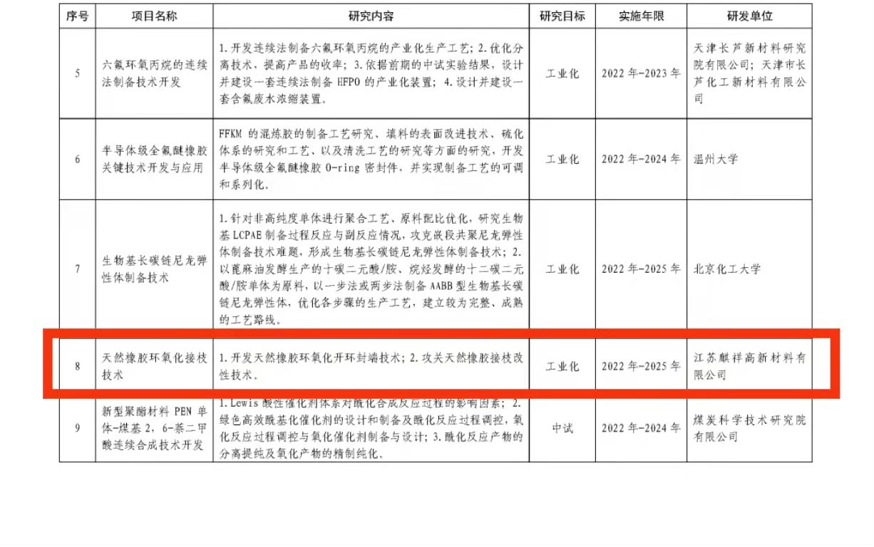 麒祥新材料“天然橡膠環(huán)氧化接枝技術(shù)”成功入選《2022年度中國(guó)石油和化學(xué)工業(yè)聯(lián)合會(huì)科技指導(dǎo)計(jì)劃》
