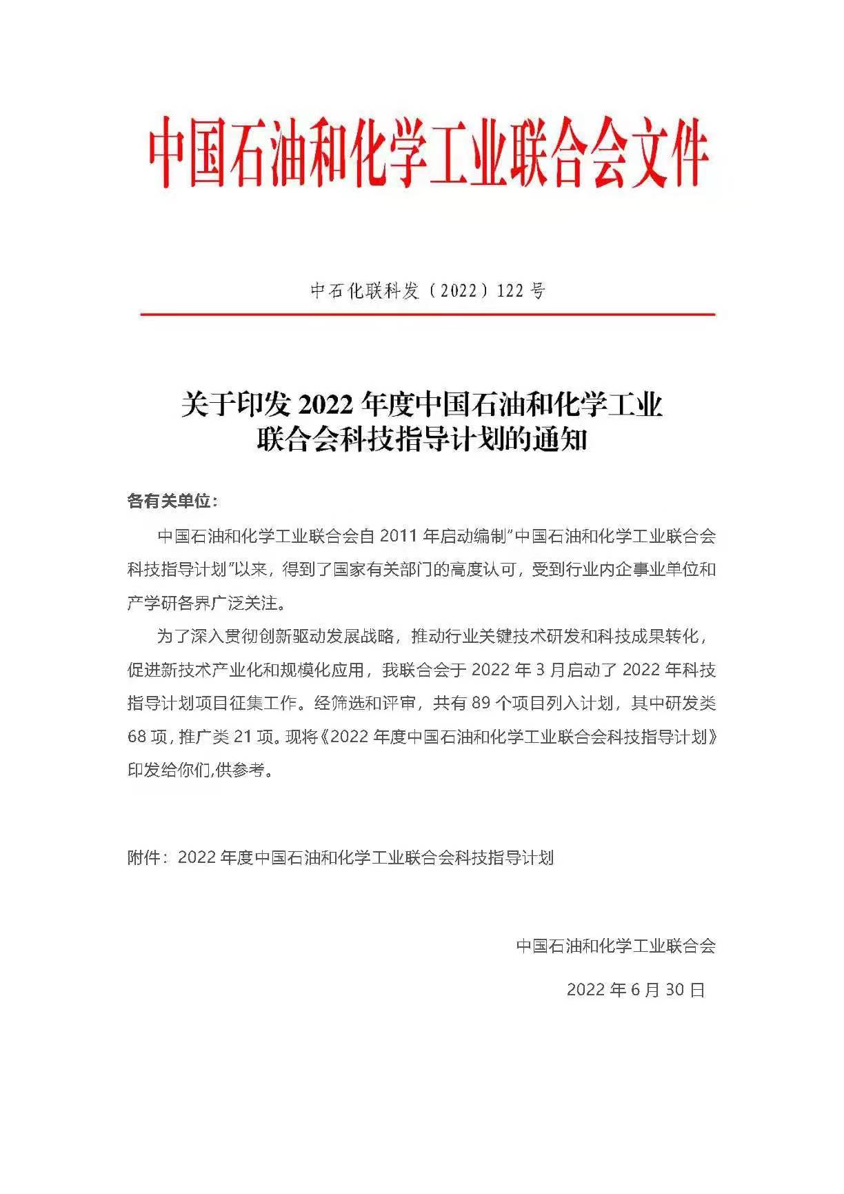 《2022年度中國(guó)石油和化學(xué)工業(yè)聯(lián)合會(huì)科技指導(dǎo)計(jì)劃》。