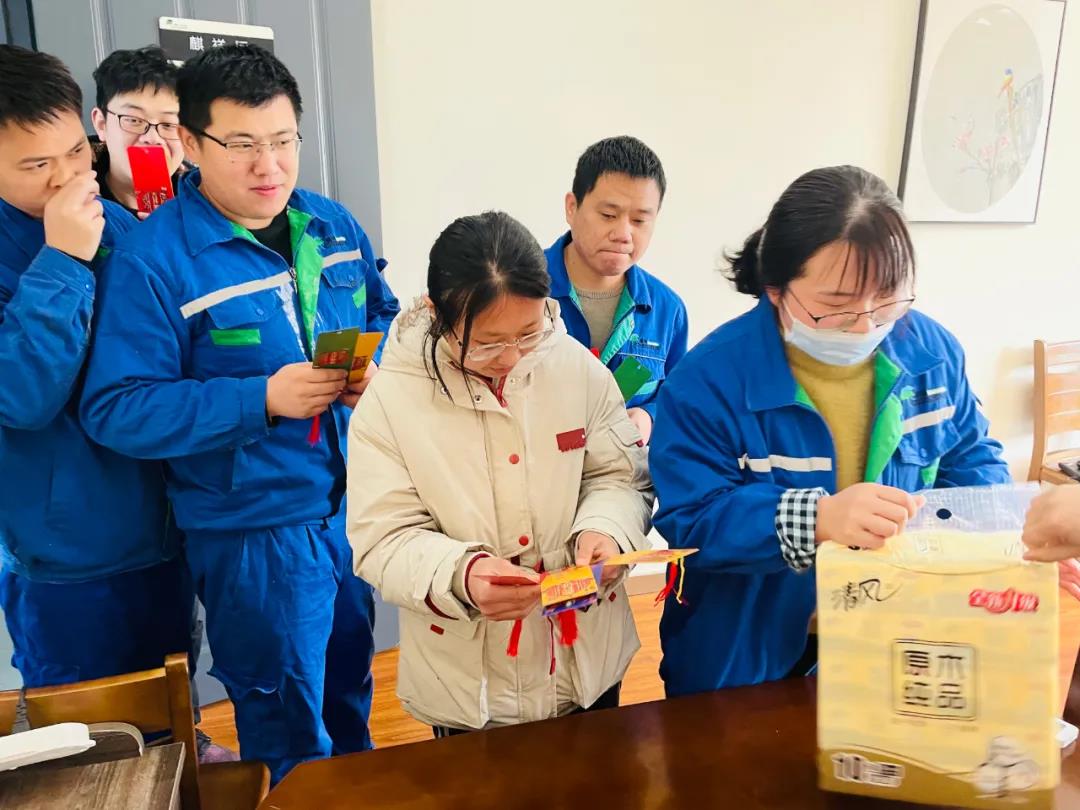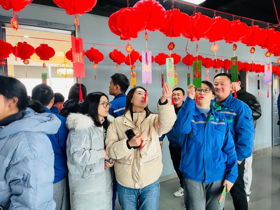 很快,第一個(gè)獲獎(jiǎng)?wù)呔驼Q生了,是安環(huán)部的李軍,只見(jiàn)他核對(duì)過(guò)謎底后飛快的沖到對(duì)應(yīng)的字謎旁,興奮的摘下了象征勝利的兩張燈謎卡,開(kāi)心的領(lǐng)到了第一份小禮品,現(xiàn)場(chǎng)同事一起為他歡呼喝彩。