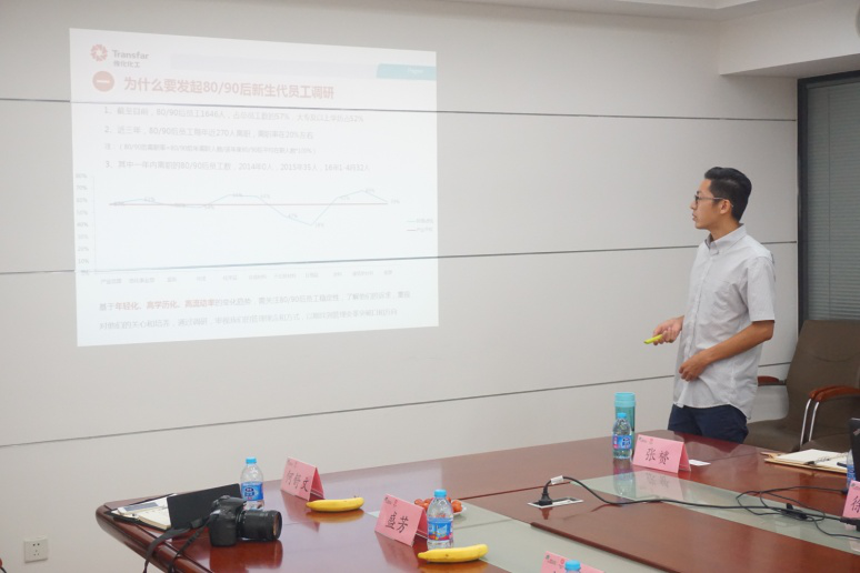 上圖為傳化合成材料人力資源主管在進(jìn)行分享