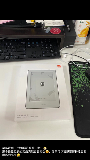 人人惦記的閱讀器落到了江蘇麒祥蘇州分公司任昱曉同學(xué)的腰包里。