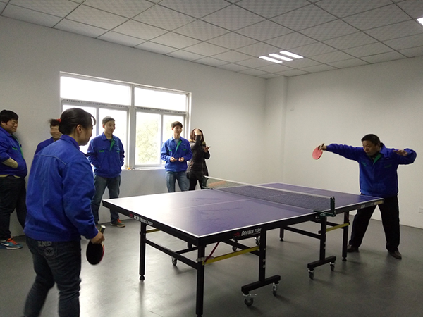 財務(wù)中心經(jīng)理孫中領(lǐng)和技術(shù)中心左曉麗進(jìn)行乒乓球PK
